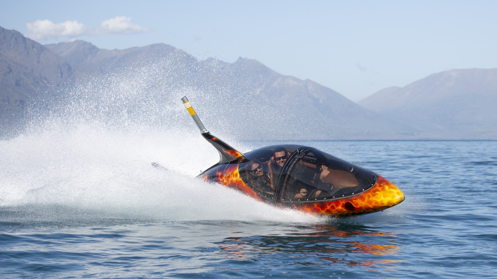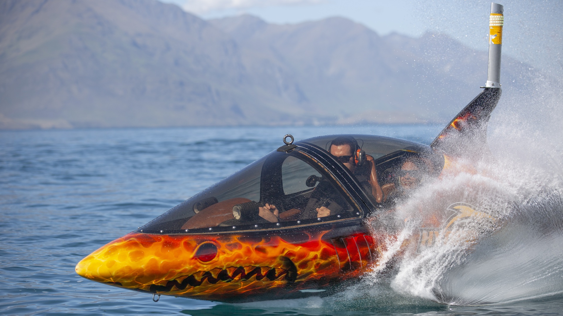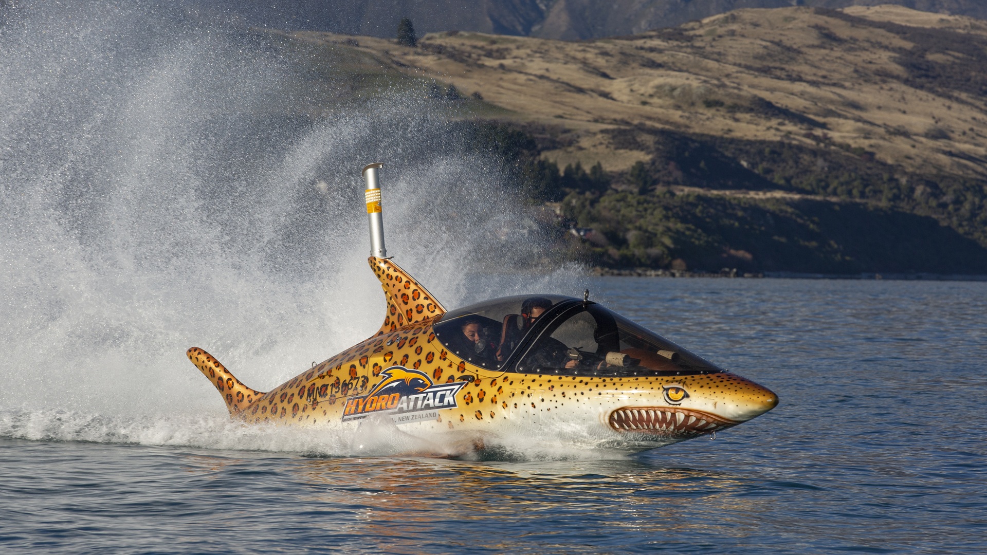Their thrilling ride places guests inside a custom-built, shark-shaped semi-submersible vessel capable of diving six feet beneath the surface before bursting spectacularly out of the water. Powered by a 260-horsepower engine, the vessels can reach speeds of up to 80 km/h on the surface and 40 km/h underwater. Combining cutting-edge engineering with exhilarating performance, Hydro Attack delivers an unforgettable, high-energy encounter with Queenstown’s iconic alpine landscape.