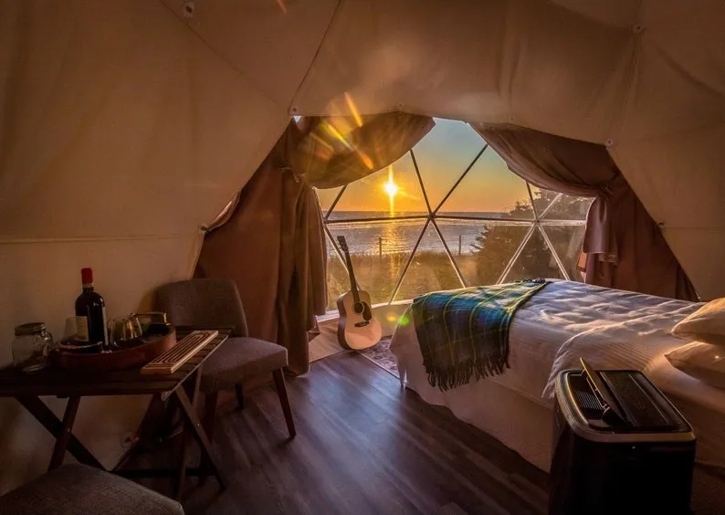 Wake up to breathtaking sea views and the soothing sounds of waves and birds. Their elegant glamping tents offer luxurious beds and cozy decor for an unforgettable stay.